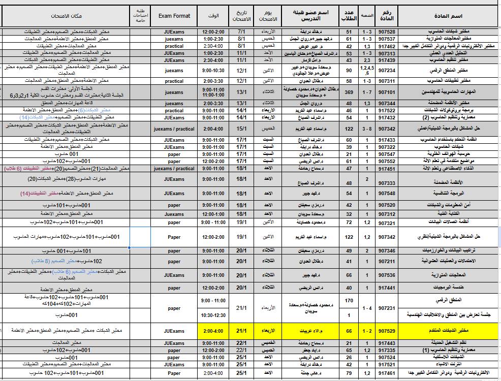 Final exams schedule for Fall 2025/2026